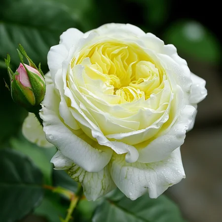 Trandafir englezesc catarator de David Austin, cu flori mari, bogate, de un galben delicat cu petale exterioare mai deschise. Florile sunt parfumate, cu nuanțe proaspete de fructe și ceai. Tufa este viguroasă, ajungând la 2,5–3 m, potrivită pentru pergole, garduri sau ziduri. Înflorește abundent și prelungit vara și toamna. Preferă un loc însorit și sol bine drenat, fertil.