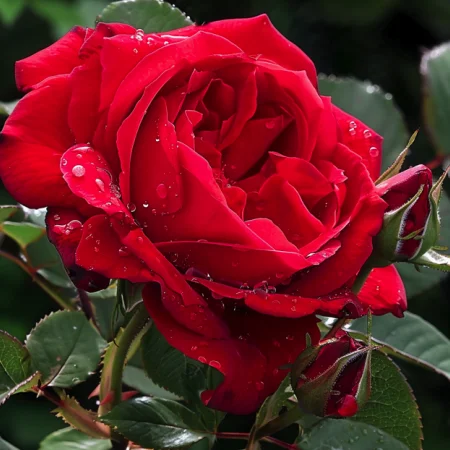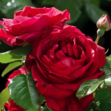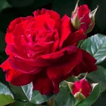 Soi frumos cu flori elegante și parfum plăcut. Florile sunt roșu intens cu nuanțe portocalii, creând un aspect cald și vibrant. Tufa este sănătoasă, cu frunziș verde dens, potrivită pentru grădini și amenajări decorative. Înflorește abundent pe tot parcursul sezonului și este relativ rezistentă la boli.